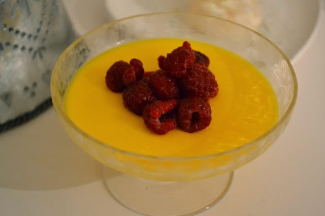 Förra helgen hade jag och mina kollegor glöggmingelkväll, och Anton hade gjort en jättegod saffranspannacotta! Har inte smakat det förrut, men det var en positiv upplevelse :) Och passade jättebra med hallon på! Så, igår när vi hade besök av våra fina Bergsbyvänner gjorde jag ett försök, och det lyckades också ;) Det är ju så enkelt med pannacotta, och samtidigt så festligt!